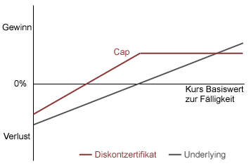 Diskontzertifikate sind klassische Vertreter der Zertifikate, weil es diese neben den Index- und Basketzertifikaten am längsten gibt. Der Name ist Programm. Ein Diskont Zertifikat ermöglicht es dem Anleger, unter Verzicht auf die Dividende des jeweiligen Basiswertes, diesen mit einem Abschlag (Diskont, Rabatt) zu erwerben. Dadurch ergibt sich für den Anleger ein gewisser Vorteil gegenüber dem Käufer, der direkt in den Basiswert investiert. Da er den Wert praktisch günstiger gekauft hat, kann er im schlimmsten Fall weniger Geld verlieren. Welche Auswirkungen dieser Diskont weiter mit sich bringt, präsentieren wir am folgenden Beispiel der Aktie BEISP (fiktiv). Ausgangssituation Sie planen die Aktie BEISP AG in Ihr Depot aufzunehmen. Diese notiert heute bei 100 Euro. Ihre Depotbank bietet Ihnen an, diese Aktie für 90 Euro statt für 100 Euro zu kaufen. Das Angebot klingt gut. Gleichzeitig teilt Ihnen ihre Bank mit, dass diese Schuldverschreibung eine Laufzeit von 12 Monaten hat und nach Ablauf eine Rückzahlung in Höhe des Kurses der BEISP Aktie vorsieht. Einziger Wermutstropfen - Maximal zahlt das Zertifikat 110 Euro zurück. Um dieses Angebot zu bewerten, bedarf es zunächst einer kurzen Szenarioanalyse. Szenario 1: Wir nehmen an, dass die BEISP Aktie in dem betrachteten Zeitraum um 8%, also auf 92 Euro gefallen ist. Da das Zertifikat eine Rückzahlung in Höhe des zugrunde liegenden Aktienkurses vorsieht, notiert es ebenfalls bei 92 Euro. Für die Aktie ergibt sich eine Wertentwicklung von -8%, das Diskontzertifikat hat seinen Wert um 2 Euro steigern können und dem Anleger zumindest einen kleinen Gewinn bescheert.